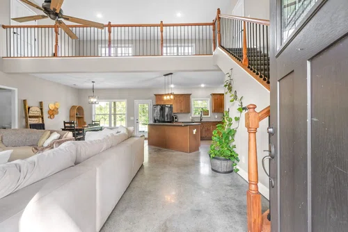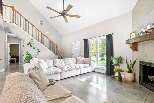 Your 25-Acre Retreat Awaits Seize the rare chance to own 25 acres of tranquility, featuring a blend of woodland and pasture for endless outdoor adventures. A functional tobacco barn adds rustic charm, perfect for storage or creative uses. Enjoy the serenity of a fresh water spring and peaceful creek on the property. The Home This 2,200 sq ft retreat offers an open floor plan with 3 finished bedrooms, 2 baths, and 2 additional rooms ready for your touch. A loft area provides extra living space. Modern features include a gas fireplace, granite countertops, and finished concrete floors, blending rustic charm with contemporary convenience in a private, peaceful setting. Don't miss your chance to own this slice of paradise!