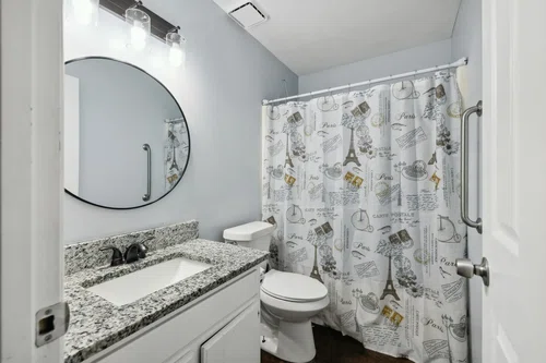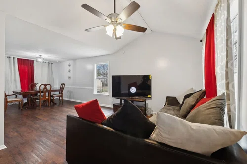 Adorable property, including fresh paint, almost like new hardwood and tile flooring, stainless steel appliances. The open-concept layout between living space and dining creates a seamless flow, perfect for both entertaining and everyday living. This home boasts three generously sized bedrooms, each offering closet space and natural light. The kitchen and bathrooms are adorned with elegant granite countertops, adding a touch of luxury. Additional highlights include updated lighting fixtures and a spacious backyard—ideal for relaxation or gatherings. Move-in ready and designed for comfort and making memories with the family, this home offers both coziness and functionality. Please note that due to the current weather conditions, the curb appeal in the main photo may appear different. The grass is not as green, and flowers are not currently in bloom. This image is intended to provide a general idea.
