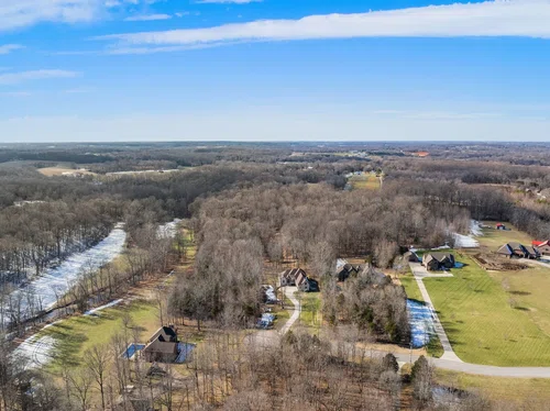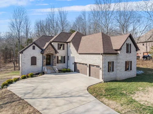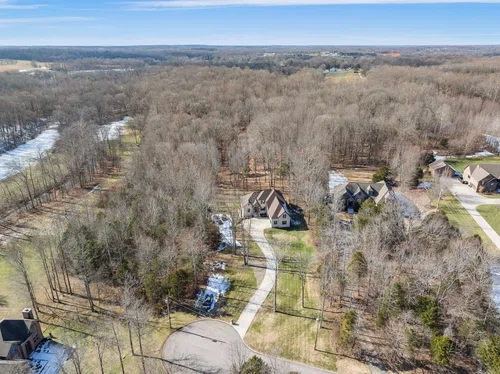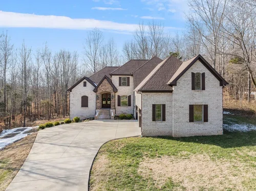 Video Tour in link below— Elegance, privacy and nature abound on this 7 wooded acres just 30 minutes to downtown Nashville! Quiet cul de sac living, this home offers room to expand! Primary bedroom and ensuite on the main floor away from the action. Open concept living room, dining room and kitchen perfect for entertaining. Large theater room on second floor offers privacy from the main level. Basement is partially finished (900) sq feet with room to add a formal kitchen, bedrooms, bathroom or workshop. Basement is decked out with a bar and entertainment area. In addition, the basement has a garage door for open outdoor entertainment or toy storage. The 6.7 wooded acres has cut trails that leads to a year-round flowing stream. Wildlife right off your back deck offers a hunters paradise. Tons of storage, three-car attached garage. No HOA, no restrictions!
