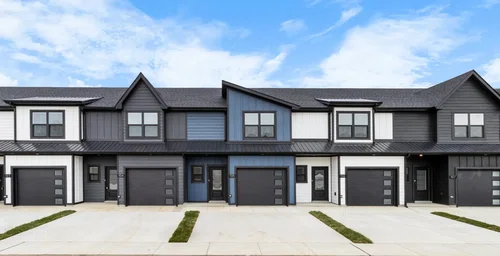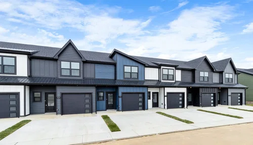 These luxurious modern townhomes have upgraded finishes throughout. Each unit includes a 1 car attached garage & driveway for additional parking. Additional parking spaces are available throughout the development. Nice open living space on the main level. Kitchen features quartz counters & stainless steel appliances. Plenty of cabinet & counter space. Main level also includes half bath. Upstairs you will find two oversized bedrooms, each with attached baths! Both upstairs bathrooms feature LVP flooring & upgraded fixtures. Laundry closet is also conveniently located upstairs between the bedrooms. HOA includes full lawn care, trash concierge service, & insurance on exterior building, common grounds, mailbox clusters and HOA.