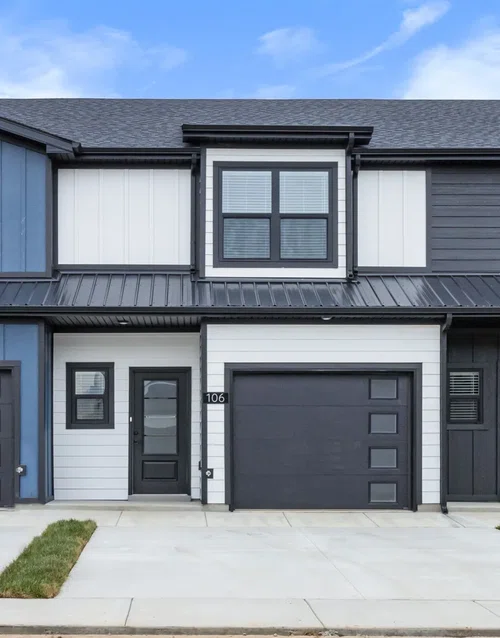 These luxurious modern townhomes have upgraded finishes throughout. Each unit includes a 1 car attached garage & driveway for additional parking. Additional parking spaces are available throughout the development. Nice open living space on the main level. Kitchen features quartz counters & stainless steel appliances. Plenty of cabinet & counter space. Main level also includes half bath. Upstairs you will find two oversized bedrooms, each with attached baths! Both upstairs bathrooms feature LVP flooring & upgraded fixtures. Laundry closet is also conveniently located upstairs between the bedrooms. HOA includes full lawn care, trash concierge service, & insurance on exterior building, common grounds, mailbox clusters and HOA.