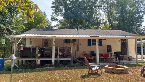 Charming Lakeside Retreat with Modern Upgrades on 2.07 Acres – 1075 Sandys Camp Rd, Big Sandy, TN Welcome to this beautifully maintained home nestled on 2.07 serene acres, offering seasonal water views and located just 1 mile from a public boat ramp and the historic Danville Ferry. This property is a true gem for those seeking both comfort and convenience, blending modern upgrades with classic charm. Key Features: New Roof (2016), HVAC (2020), Water Heater (2023) – Rest easy with all the essential updates already taken care of. Chef’s Dream Kitchen – Remodeled in 2020, this kitchen is a culinary delight featuring stunning live-edge black walnut countertops, pull-out shelving, and an under-counter mixing stand for seamless meal prep. It’s equipped with a double oven (lower oven includes convection) and a spacious country-style sink, perfect for all your cooking adventures. The cozy eat-in kitchen area makes for a great gathering spot. Luxurious Bath Remodel – Recently updated bathroom with a sleek, walk-in shower featuring a bench seat—ideal for relaxation and accessibility. Outdoor Living at Its Best – A sprawling 12x32 covered patio offers the perfect space for outdoor entertaining, while the upper deck—accessible from the master bedroom—comes complete with a hot tub (negotiable with the right offer). Whether enjoying your morning coffee or winding down in the evening, these outdoor spaces are designed for tranquility. Ample Storage & Workspace – The property boasts a large garage, complete with custom counters, cabinets, and its own private toilet and shower (with a separate water heater). There's also an attached lean-to for extra parking and storage space. A large workshop, flooded with natural light, includes a double commercial sink and counter—perfect for any DIY projects or hobbies. Boat & Camper-Friendly – The additional double carport provides ample space for turning around, along with room to park your boat or camper.