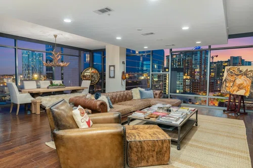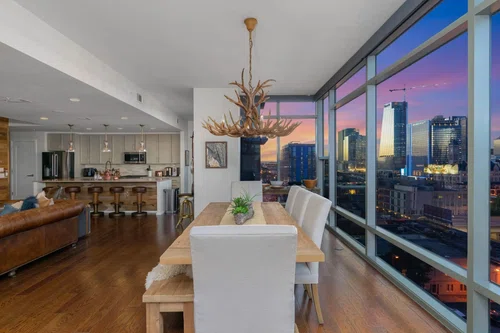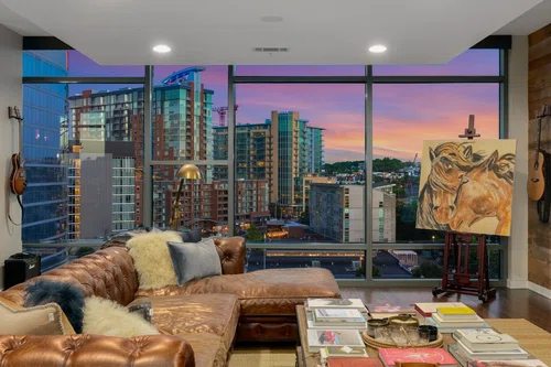 Panoramic views of Nashvilles most desired neighborhood, The Gulch. A premiere Twelve Twelve corner unit in the highly sought after corner stack of the building. One of the few with gas and all new designer appliances. Sweeping open floor plan with a beautiful city background. Custom wall coverings and modern rustic touches throughout. It also has a brand new HVAC system and hard wired electric blinds. Amenities include a 3500 SF fitness center, spa style pool and hot tub, guest suites, Leed certified building with green roof and indoor dog walk.