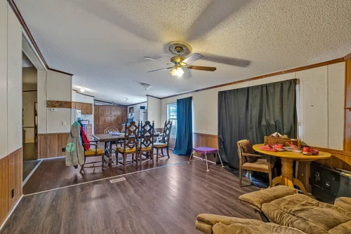 REDUCED! This is a 4 bedroom 3 full bath home. The front porch or entryway area offers an opportunity for personal touches to create a warm and welcoming entrance. This manufactured home is ready for a buyer with a vision and willingness to invest in some updates. With a little TLC, it has the potential to become a comfortable and inviting living space. Notice the nice large kitchen with extra cabinets. Nice big den and dinning room for entertaining. The front porch or entryway area offers an opportunity for personal touches to create a warm and welcoming entrance. In the front is fenced in area for the house hold pet. Then there is another large fenced in area for horses or even goats. Be sure and notice the detached 2 car garage. Ask us about the possibility of the 2/1 buy down so this can be in your budget.