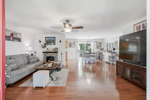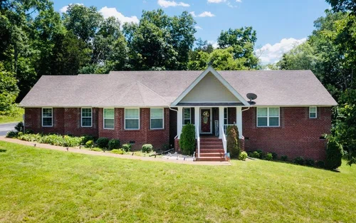 The property features a beautifully level lot, ideal for entertaining friends and family. A unique circular driveway adds convenience, while a cleared area on the second acre presents an exciting opportunity for a future pool and pool house—imagine summer days spent lounging in your own oasis!