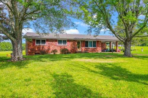 Welcome to the Valley! A beautifully maintainey brick home nestled in the heart of 12 acres between the hills of Middle Tennessee. This charming 3-bedroom, 1-1-bathroom home offers 1700 sqft of cozy living space, perfectly designed for those seeking more of an open floor plan. Step inside to find a large den with a gorgeous stone fireplace, french doors and open to the dining and kitchen area. Talk about inviting! A spacious laundry room upstairs as you enter through the covered carport. No laundry downstairs! Partial unfinished 1,285 sq ft basement is great for storage and stays dry! Outside, the property and views are a dream. An established mini apple orchard started generations ago. Large barn on property. This property is perfect for anyone with plans for animals, gardening, or homesteading or just having a little space to stretch out!