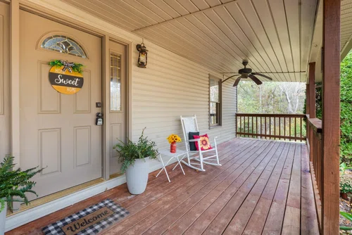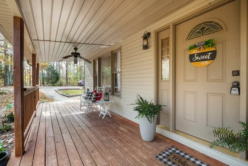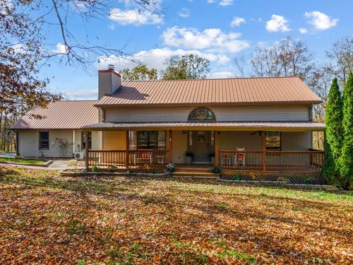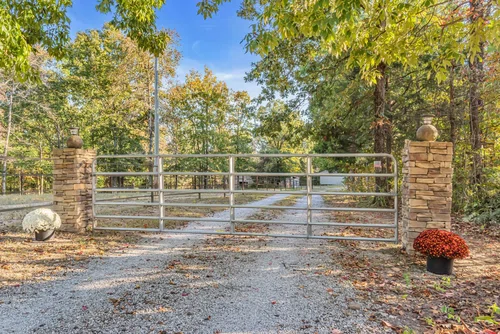 Country Living with Modern Comforts. This home is nestled on 11.77 acres of privacy. 4 bed/3 bath home combines rustic charm w/modern elegance. Perfect for fishing, hunting, farming or enjoying the great outdoors. Spacious floor plan with open concept living area, vaulted ceiling, wood-burning rock fireplace. stylish kitchen w/new cabinets, sleek countertops, double sink, faucets, SS appliances, unique island, soft close drawers for ultimate convenience and new flooring throughout main level. The 1st floor bathroom features a new vanity, modern countertop, large jacuzzi tub/shower combo, new flooring, spacious closet for storage. Two bedrooms on main level with large closets. Private master suite upstairs offers a separate living/office area with view of the fireplace, private balcony access, built in bookcases and a massive walk-in closet. Spacious bathroom w/jetted jacuzzi tub and separate shower for two. Home is equipped w/tankless water heater, mini-split A/C for large bedroom w/private bath above garage. Property features electric fencing, 30x40 barn w/4-5 stalls, water, electricity, farm shop with electricity & chicken coop. .ideal for horses, livestock or farming. Enjoy the benefits of well water (no water bill) w/1 year old pump that reaches 500-600 ft. down, along with updated wiring & vacuum system under house. Take a dip in the above ground pool, w/liner & pump less than 3 years old. Beautiful peach trees and more. Just minutes away from a local golf course, shops, marina and amenities. A must see!
