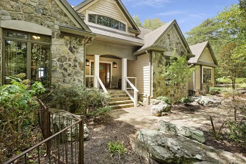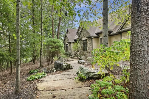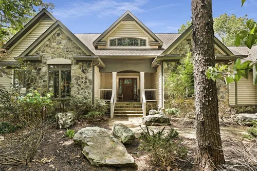Welcome to your dream retreat secluded in the heart of nature on 13.7 acres with spring fed creek and endless BLUFF views! Nestled within the gated Timberwood community, this stunning custom home offers unparalleled luxury & breathtaking mountain views. You can even hear the waterfall running from the large back deck or the screened in patio. Boasting meticulous craftsmanship & thoughtful design, this residence is the epitome of luxury mountain living. From the front door you're greeted by an open floor plan that seamlessly blends elegance & comfort w/ the stone fire place, vaulted ceiling into the open kitchen. The heart of this home is undoubtedly the gourmet kitchen, featuring top-of-the-line appliances, built-in fridge, eat in bar & breakfast area. Primary suite is spacious with his & her closets, heated tile floors in the bath walk in shower & soaking tub. Every bedroom has its own bath. This house was built to entertain with its theatre room & party room featuring a wet bar.