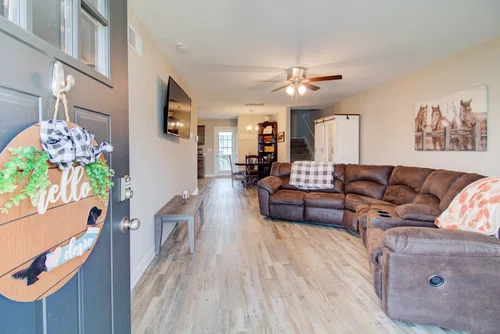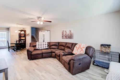 Contemporary haven that promises the comfort of modern living in the heart of Clarksville! This 3 bdrm 2.5 bath is a perfect blend of style and functionality. As you step inside, the open-concept layout greets you with a warm embrace, leading you through the spacious living area that is flooded with natural light. The modern kitchen is a chef's delight, featuring granite countertops, sleek cabinetry, and a charming breakfast nook. Upstairs the primary bedroom offers serenity and space making it a true retreat, complete with a luxurious en-suite bath and walk-in closet. Two additional bedrooms provide ample space for guests, complemented by a full bath. Don't forget to check out the backyard which is an entertainer's dream, offering a lush lawn and covered deck - perfect for gatherings or quiet evenings under the stars! With just being a stone's throw away from local amenities, schools, and parks, this home is the key to starting a new chapter in your life!