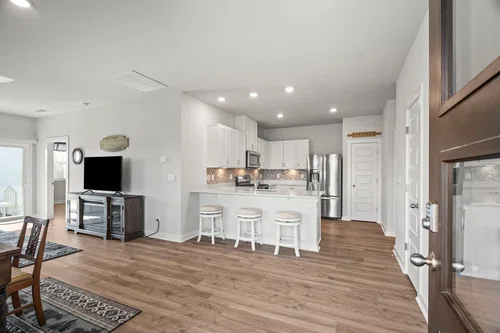 Picture yourself coming home to this three-bedroom single level villa in the new Nexus South Community, a 55+ gated neighborhood located 30 miles northeast of Nashville in Gallatin, TN. Situated on a premium lot that maximizes natural light and offers a rear patio overlooking the tree line -this home is ready for you now! The kitchen entertains white quartz, white cabinets, a tiled backsplash, stainless steel Whirlpool appliances, and a pantry. The owner's suite includes an ensuite with double vanity, separate water closet and a spacious walk-in closet. Bedrooms two and three and the secondary full bath are located on the opposite side of the home, providing privacy for guests. Ceiling fans are in every bedroom, living room, and on the back porch. A screen door to the back patio slider allows for fresh air. There is a tankless water heater and a Maytag washer and dryer that will remain with the home! Enjoy a maintenance-free lifestyle and spend your free time at the upcoming community clubhouse, featuring a pool, eight pickle ball courts, two tennis courts, plus two bocce ball courts. Prefer a leisurely pace? Take a stroll on the community walking trail. Do not miss your chance to make this beautiful almost-new villa your home and start living life to the fullest!