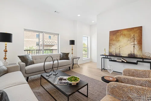 Suburban Chic 2 bdrm/2.5 Bath, 2 story loft style condo with 2 car garage! 1400 SF Open Floor plan featuring 10ft ceilings throughout, Mohawk Revwood laminate flooring on 1stand 2nd floors, solid wood staircase. Beautiful kitchen features quartz countertops, 9ft+ peninsula island, tile backsplash, custom built cabinets with soft close doors and drawers & SS appliances! Primary bath features large glass enclosed shower with mosaic tile floors and floor to ceiling tile walls, double vanity with quartz counters and under mount sinks. Large secondary bedroom with en suite bath. New construction! Williamson County Schools, Walk to Shops & Restaurants! Buyer to verify all information. Limited time $10,000 towards closing cost and/or price must use Encompass Home Loans and Phoenix Title Services - call for details.
