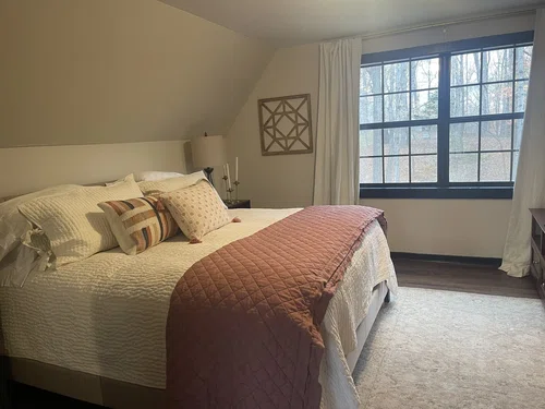 Discover the perfect blend of rustic charm and lakeside serenity in this cabin nestled among the trees. A tranquil escape awaits, where you can enjoy both the soothing ambiance of the woods and the refreshing breeze from the nearby lake. Make every day a retreat in your own cabin paradise! This cabin is a black a frame style home. it is a 3 bedroom (1 bedroom is a bunk room with 6 custom built queen bunks), 2 full baths with approximately 2,000 square feet. Inside features 2 fireplaces, quartz countertopps, hardwood floors, stainless steel appliances,tankless hot water heater and much more.Oouside features a wrap around deck ,6 person hot tub ,6 piece patio set with fire table .outside fire pit with 8 adirondack chairs .