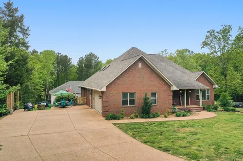 REDUCED TO $499,000..Discover the enchantment of lake living at Kentucky Lake! Tucked away in a secluded area and just a short jaunt from the covered community dock, awaits your dream home. Soak in the charm of this 5BR/4BA brick house snuggled in the midst of Paris Landing & Buchanan Resort area. Savor the expansive great room, a tastefully designed eat-in kitchen with granite countertops, coupled with a spacious dining room. Sized just right for a big family, it offers ultimate privacy at every level. Beneath, you'll find a grand 3-car garage, both heated & cooled, featuring a large leisure room, and a bedroom. Both the patio below and deck above are perfect spots for unwinding. The main level extends even more room with an additional 2-car garage - ample space for all your lake toys. Boasting a generous 5260 sq. ft. cover and around 4814 sq. ft. of comforting warmth and cool, there's room for every indulgence.