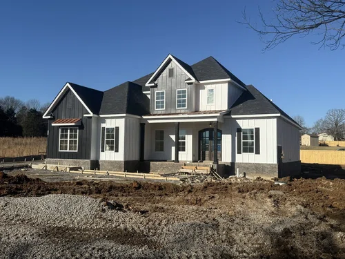 Premium opportunity in Mount Juliet for a brand-new home with no HOA!!! This beautiful white farmhouse home sits on over a half-acre lot, and comes with a third car garage. The first floor features 10-foot ceilings, and a very spacious master bedroom suite. The home has 4 bedrooms and is designed to accommodate an extra bedroom option on the first floor. The beautiful great room offers 12 ft ceilings, and opens to a well-designed kitchen, just perfect for hosting. Enjoy tranquil backyard sunsets from the back deck and private location of this home. Located 10 minutes from both I-40, Providence MarketPlace and all 3 schools!