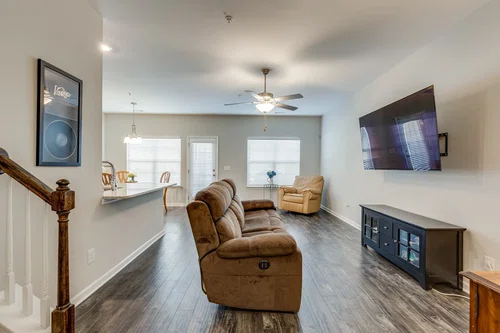 This townhome offers a charming covered front porch and a beautifully designed open-concept main living space where the kitchen seamlessly flows into the great room—perfect for entertaining and everyday living. The kitchen features elegant granite countertops, modern cabinetry, and ample storage space. Upstairs, enjoy the spacious owner’s suite with a huge walk-in closet that conveniently connects to the laundry room for ultimate ease. Two additional bedrooms provide flexibility for a home office, guest room, or bonus space. Additional highlights include a full bath upstairs, a powder room on the main level, and a 1-car garage. Conveniently located to numerous restaurants, shopping, Columbia, Saturn Parkway and I-65. You can also walk next door to the library-maintenance living in a fantastic Spring Hill location makes this home a must-see! Special Financing Incentives Available!