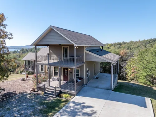 Life Is Better At The Lake* Every Bedroom of this Contemporary Home has its own Covered Deck with Spectacular Views of the mouth of Richland Harbor as it joins the channel of the TN RIVER* This stunning property boasts an open floor plan with Master Bedroom & Bath on Main Level* Covered Screened-In Deck off Master Bedroom is perfect place to enjoy your morning coffee while overlooking KY Lake* Custom Cabinetry & Granite Countertops in Kitchen & Baths* Major Appliances remain* 2 Bedrooms & Full Bath on 2nd Level* Spacious Bonus Room & Half Bath in Basement along with Single Car Garage Attached* HARDWOOD Floors thru out with TILE in Kitchen, Basement & Baths* Central Vacuum System* GENERAC Whole House Generator runs off Propane Tank* Concrete Drive* Shared DOCK & RAMP is YEAR ROUND Deep Water Access* You must see this view to appreciate! Property consists of 1.52 Acres with adjoining vacant lot consisting of 2.15 Acres that is also available* Property joins Turtle Point & Doverdale Rd*