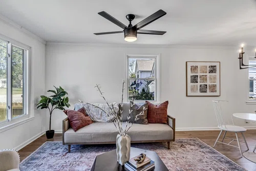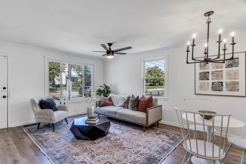 Charming remodeled single-story home features a striking painted brick exterior and well-maintained landscaping that creates inviting curb appeal. An Open-Concept Layout w/ seamless flow from the kitchen to the living area is cozy yet spacious & filled w/ natural light for a warm & inviting atmosphere. . Gourmet Kitchen is equipped w/ modern stainless steel appliances, custom soft-close cabinetry, and a central island with bar seating. Enlarged Primary Suite: a highlight of the home, featuring a spacious bedroom, large glass-enclosed shower, and a walk-in closet. New subway tile and elegant upgrades in the guest bathroom, complemented by new flooring throughout. Bonus Room offers versatile space with a gas fireplace, perfect for a playroom or home office. New tankless water heater and a convenient walk-out laundry/mudroom from the detached garage. This home blends modern elegance with functional design.