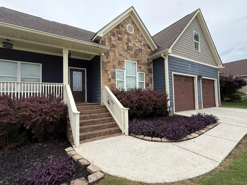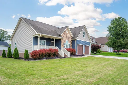 This home offers a charming corner lot in the sidewalk-lined subdivision of Farming Rock. Its location provides easy access to downtown Chickamauga, Fort Oglethorpe, as well as Chattanooga. This home is zoned for the sought after Heritage School District, making it perfect for families with children The open-concept design includes a large kitchen island, which is perfect for entertaining guests or enjoying family meals. The split floor plan ensures privacy, with the master suite offering a spacious ensuite bathroom complete with his and her vanities, an oversized closet, and a separate tub and shower. Upstairs, you'll find a versatile space that can serve as a fourth bedroom or a bonus room, providing flexibility to suit your family's needs. The fenced backyard is a haven for outdoor activities, featuring a raised garden bed for those with a green thumb. It's an ideal space for pets and children to play, or for anyone looking to escape the hustle and bustle of daily life. The covered porch offers a perfect spot to relax and unwind, making this home a true sanctuary.