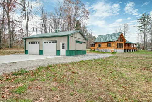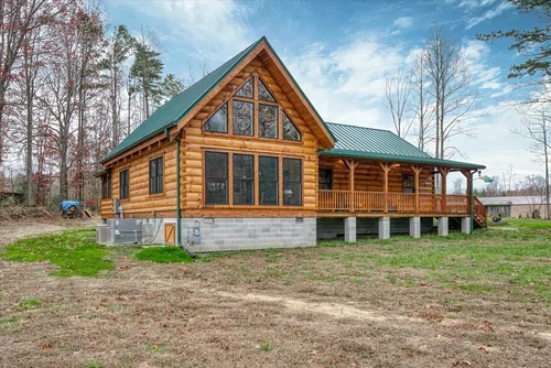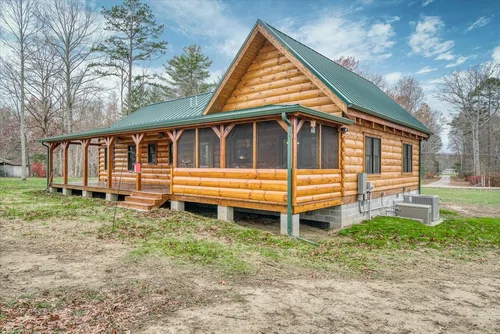 Beautiful, Newer Custom, Honest Abe Log Home! This Newly built 2024 Log Home has hickory flooring with large cathedral ceilings, a large window in front for lots of lighting, a stone gas log fireplace, and porcelain tile flooring in the kitchen and bathrooms. The kitchen has many custom hickory cabinets, Kitchen-aid black stainless steel appliances, and granite countertops with a large island. A Large master bedroom with tile walk-in shower. A 10 X 16 screen on the porch to enjoy the great outdoors. A lot of extra and custom items, such as an on-demand water heater, natural gas home generator (Kohler), concrete flooring in crawl space, well water as well as city water, RV hookups, and septic, 24 X 32 garage/workshop all located on approx. 2 acres with no restrictions in great location. The buyers and Buyer's agent to verify all information. Call today!