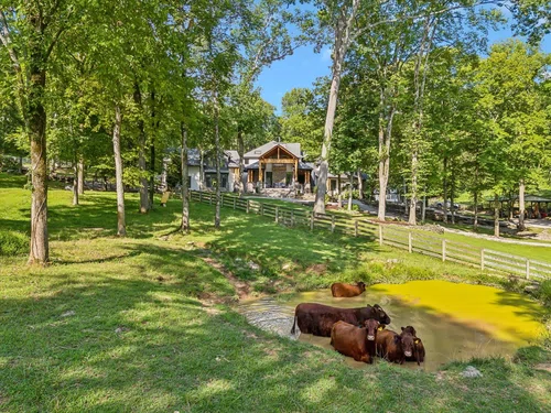 Welcome to 3120 Boxley View Lane, Franklin, TN—a stunning 5,748 sq. ft. custom estate home with a 1,700 sq. ft. guest house on a serene, wooded lot. This luxurious home features five spacious bedrooms, four and a half baths, and impeccable craftsmanship. The grand foyer leads to an open-concept living area with a majestic stone fireplace and floor-to-ceiling windows that flood the space with natural light. The gourmet kitchen boasts top-of-the-line appliances, granite countertops, and a large island. The sumptuous master suite offers a spa-like bath with a soaking tub, a walk-in shower, and luxurious finishes. Outdoors, enjoy a resort-style setting with a covered patio, a pristine pool, a cascading waterfall, and a stately stone fireplace. The property includes a 1,700 sq. ft. guest house and a 3,500 sq. ft. barn, perfect for extended stays and versatile use. Additional features include a state-of-the-art home theater, a refined home office, and a three-car garage. This distinguished residence offers an unparalleled lifestyle.
