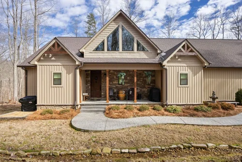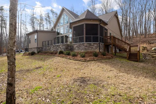 This stunning Lake house retreat on Signal Mountain is a true gem, combining breathtaking natural beauty with impeccable craftsmanship. This custom-built one-level home overlooks a serene lake that you can enjoy from your open front porch, or the charming, screened porch w-fireplace and vaulted wood ceiling, or your private lighted dock situated on over 10 acres within a secure gated community. So many options for enjoying morning coffee or winding down in the evenings while taking in the tranquil lake views. When you are done with your workday, you might soak in your private hot tub or roast marshmallows by the custom designed fire pit. You will find this home to be a peaceful haven for the body and mind. As you arrive, the impressive scenery greets you upon passing through the lovely, gated entrance. Inside, the spacious open layout features a wall of lakeview windows allowing warm, natural lighting into the great room with two-story vaulted ceilings, exposed beams, and a magnificent stone fireplace that serves as a stunning focal point. This custom kitchen and dining area create the perfect environment for entertaining family and friends. The home provides two large luxurious primary suites. The owner bath is elegantly appointed with walk-in tiled shower, jetted tub and custom designed walk-in closet. What is being used as a theater room by the current family, easily becomes the third equally large bedroom based on your family needs. Constructed with durable stone, gorgeous stamped concrete porches, and commercial vinyl, exterior maintenance is minimal allowing you more time to enjoy the beauty of your surroundings. The home includes a detached storage building, a storm shelter below the house, and a new Generac home generator. Turn this beautiful land into a family compound by adding another three bedroom home on its approved second perc'd site! Do not miss your chance to experience this one-of-a-kind retreat,call today to schedule your private showing.