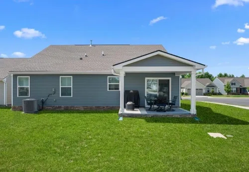 Welcome home to this perfectly maintained 3 bedroom, 2 bath home convenient to I-65. The kitchen includes upgraded cabinets, quartz countertops, a high-end gas cooktop, and microwave. The plantation shutters add a touch of class throughout the home. The primary bedroom has a large walk-in closet, double vanities, and a tiled shower. This home was designed for comfort and convenience, with no carpet to worry about. Step outside to the inviting covered back porch, which is ideal for relaxing and hosting gatherings while enjoying your corner lot. The home includes a tankless water heater and a sink in the large laundry room. The HOA will take care of cutting the grass! 381 Streamview Drive is a must-see turnkey home! Check out the 360 TOUR listed below under Documents and Links.