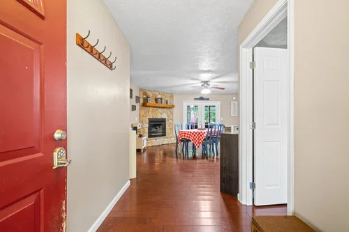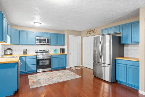 Looking for a peaceful escape with space to roam? This 3-bed, 2-bath ranch home sits on 1.75 acres and has everything you need—hardwood floors, a cozy stone fireplace, and an open-concept layout that feels warm and inviting. You'll love the bold blue kitchen, featuring butcher block countertops, stainless steel appliances, and subway tile backsplash—perfect for home chefs! The primary suite offers a bay window retreat, while the spacious deck overlooks a fenced backyard, ideal for relaxing or entertaining. Bonus? Two outbuildings for extra storage and a one-car garage with an electric car charging station! Ready to experience country charm with modern conveniences?