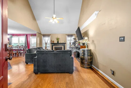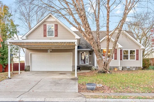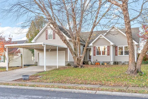 One of a kind home! Starting with the carport over the entire driveway that leads into the two car garage. Sidewalk on the side of the house that leads to the backyard. Entering the garage door, there are 2 pantries! Remodeled eat in kitchen with SS appliances!Tiled backsplash, white cabinets, and updated light fixtures with an opening to the living room. Huge formal dining room with a beautiful hanging light fixture. Very spacious living room with vaulted ceilings, fireplace, and hardwood flooring. Spacious bonus room above garage with LOTS of storage in the attic. 2 spare bedrooms are good sized. One bedroom closet has built in shelving. Primary bedroom has double Trey ceilings with a HUGE walk in closet, spacious primary bathroom with a jetted garden tub! Backyard is stunning! Lots of electric outlets outside. Pool will stay. 2 decks. Beautiful view of the farm in KY! No backyard neighbors. HUGE storage shed with electricity conveys!