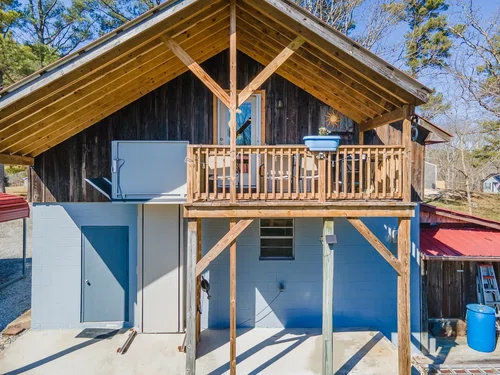 Need a Place to Live While You Build Your Dream Home? Here You Go…1 or 2 Bdrm Apartment above a 3-Bay Garage on 8+Acres (The Apartment lies within the City Limits, but the Land in back does Not) Nice Level Area to Build! FEATURES & UPGRADES…~Elevator on the Right Side Porch ~14x7 Covered Porch/Balcony ~Large Laundry Room/Closet ~2-Car Carport ~Tons of Storage ~Cypress Board & Batten Exterior ~Great Space for a Young Couple ~14x30 Workshop Area ~The Potential to Finish more of the Garage Area ~The Land Perked for a 3Bdrm in October of 2021(Expired Permit)