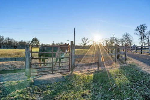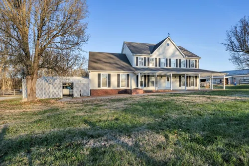 Welcome to this beautiful horse farm, featuring beautiful pastures and a variety of amenities for your horses and dogs. The property is designed for equestrian use, with a barn that includes eight matted stalls, a tack room, a wash stall with hot and cold water, and farmhand quarters with a full bath. The pastures are fenced and cross-fenced, with water and electricity available. Other features include a lit outdoor arena with water access, a horse trailer shed, a trailer turnaround, and a separate barn driveway. There is also a workshop with electricity and existing dog kennels. The home uses city water, while the barn and pastures are serviced by well water. The home itself is spacious and well-equipped. On the main floor, there is a bedroom and full bathroom, while upstairs includes a primary suite with a separate tub, shower, and double vanities. There are three additional upstairs bedrooms, a full bath and walk-in closets. The home also provides a pantry, laundry room, and extra storage spaces. It’s equipped with a geothermal 4-zone HVAC system, a heated and cooled converted garage space. Outside, enjoy a covered wraparound porch, a large back deck with a ramp, and a fenced backyard. Owner owns and operates a dog grooming business on property. Schedule your showing today!