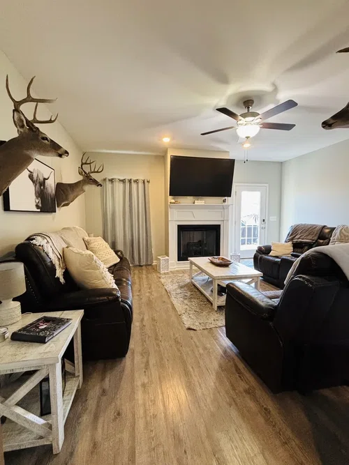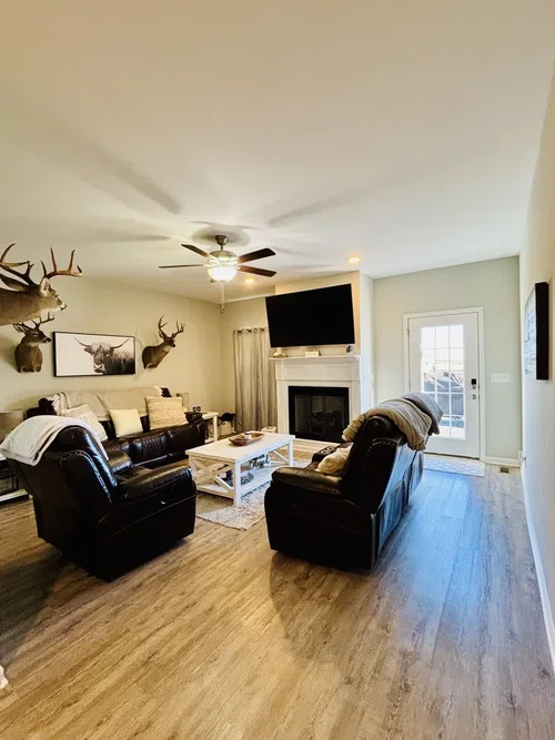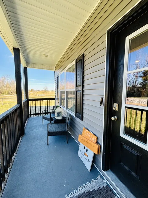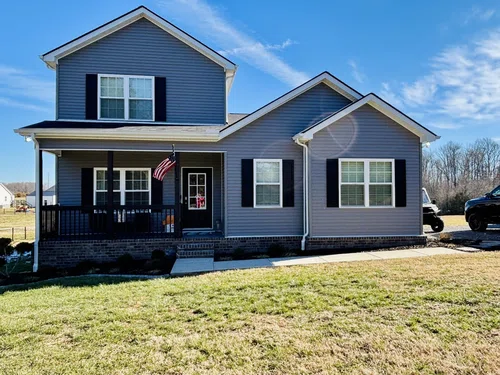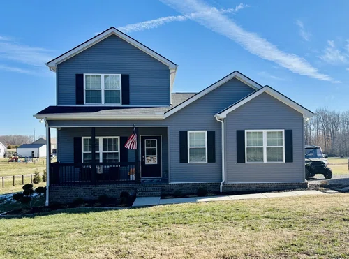 Beautiful and spacious newer home built in 2023 situated on 1.04 acres. You will fall in love when you walk through the front door of your new 3 bedroom 2 bath home! Downstairs features include iron staircase spindles, granite countertops in the kitchen, stainless kitchen appliances, lots of recessed lighting, and fireplace in the living room. The master bedroom is downstairs and has an attached master bathroom featuring double bowl vanity, custom installed Kohler walk in shower, and large walk in closet. Walk upstairs to the additional 2 bedrooms and full bathroom. Sellers have added on a large deck out back with plenty of room for entertaining your guests! 16x32 detached Storage building/garage will stay! Large chain link fence area for your animals located at the back of property. Cross over the newly built land bridge to enjoy time with your guests around the fire pit at the back of the property. This home is move in ready!