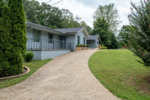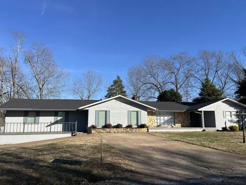 This beautiful 5 bedroom, 4 bath ranch style home is located on an expansive 1.75 acre lot with plenty of large shade trees. The NEW ROOF and 2 HVAC units were installed in 2024. The location of the home brings the feel of country living while still within the city limits. Located at the end of the street, with no through traffic, this quiet neighborhood has easy access to the 64 bypass. The kitchen has granite countertops, oak cabinetry and plenty of pantry space. All bedrooms have hardwood floors and large closets. The spacious living room and separate den have their own fireplaces and built-in shelves. The layout of the home provides a second living area that could be a perfect mother-in-law suite. In addition to over 3,000 sq ft, there is a beautiful 400 sq ft sunroom.