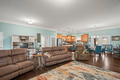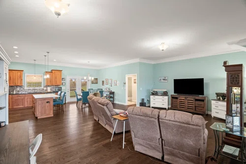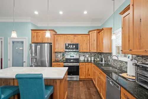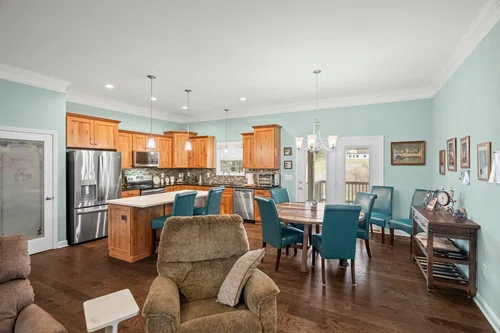 The main living area of this beautiful home features an open floor plan, crown moulding, and high ceilings creating an airy, open feel and plenty of room for entertaining. The coffee-sipping back porch can be accessed from the dining room or the primary bedroom. Primary suite boasts a walk in closet and luxurious bath with a double vanity, soaking tub, and an AMAZING shower. The wrap around driveway and temperature-controlled garage make this home better than new construction! Crawl space features a full-size walk-in door providing plenty of extra storage space. Up to $2,500 lender credit with use of preferred lender.