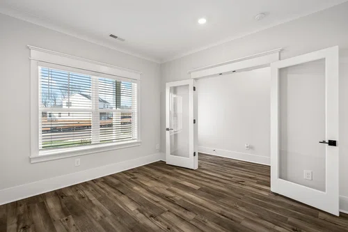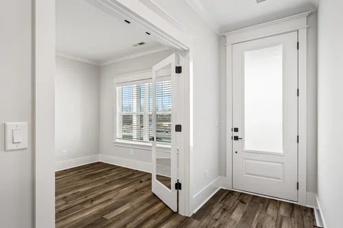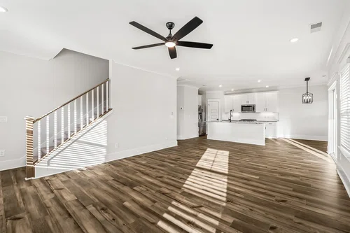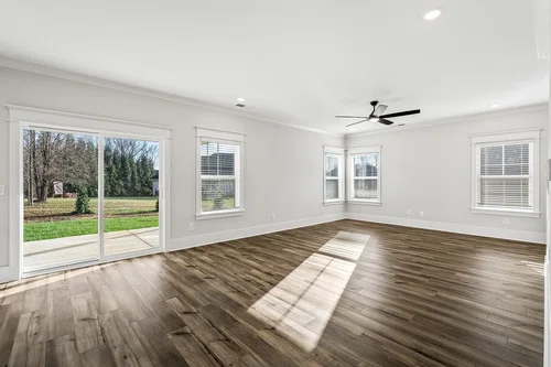 Step into this beautiful 2 story home that boasts 4 beds and 2.5 baths with a long driveway and front/rear landscaping. The flex space downstairs offers endless possibilities for personalization while the walk-in pantry and oversized garage provide ample storage options. Enjoy the convenience of a large laundry room with a cabinet package and rear oversized porch with a fan perfect for entertaining. The crown molding, blinds, ceiling fans in bedrooms ,vaulted ceilings, matte black hardware throughout and elaborate trim details add a touch of elegance to the home. The kitchen features premium plywood soft close cabinets, tile backsplash, under-cabinet lighting, top of the line KitchenAid Stainless Steel Appliances with a french door refrigerator for a modern look. The home includes LVP on the entire first level and the primary suite and laundry room. You can also enjoy the community walking trails and pond. Don't miss out on the opportunity to make this your new home sweet home!