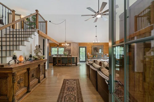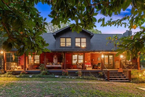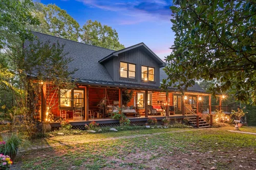 Countryside serenity meets luxury living in this immaculately restored and fully renovated Leiper’s Fork log home. Tucked into a coveted rural location in Middle Tennessee that rarely sees homes like this one hit the market, enjoy curated details and modern amenities built into a flowing masterpiece design that retains classic aesthetics and hand-selected vintage accents like salvaged barn wood and farmhouse fixtures. The main level features an open floor plan for shared moments with family & friends, plus bedrooms and full baths (also enjoy a luxury chef’s kitchen with all-new Dacor appliances, custom maple and oak cabinetry, quartz countertops, a cozy fireplace, oversized windows, and full-lite sliding doors that wash the home’s interior in warm natural light). The upper level has inviting private accommodations with a work-from-home office & open flex space. The lower level boasts a fully finished suite with private entry, a full kitchen and bath, and a game room, perfect for weekend guest stays or separate living quarters. With primary suites and bath en suites on both the main and upper levels, options abound for the owners to choose their private sanctuary (the home is septic-permitted for three bedrooms but has 4/5 total). Outdoors, the almost 6-acre parcel at the end of a private drive on a shaded knoll features peaceful, wooded terrain and views of a 3-acre aquamarine lake, all of which can be enjoyed from the home’s outdoor living amenities like the welcoming fire pit, 60ft of covered porch space, sun-kissed backyard deck, and relaxing spa pool. At 5 minutes to Leiper’s Fork, 25 minutes to downtown Franklin, 45 minutes to downtown Nashville, and 50 minutes to BNA, your perfect country life awaits.