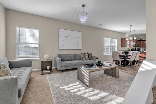 Welcome home to this beautiful end unit boasting 3 bedrooms, 2.5 baths. Warm and inviting open concept plan featuring staggered cabinets, stainless steel appliances, hardwood entry and GRANITE countertops! Privacy Fenced Patio for privacy and relaxation! Located just minutes away from the Tanger Outlets, this home offers unbeatable convenience for shopping. Security system will remain. Refrigerator, washer and dryer are negotiable. This property qualifies for a 2-1 Buydown reducing the buyer’s interest rate and payments for the first two years. Buyer is not obligated to use Kaplan Team of CrossCountry Mortgage to have offer accepted however must use Kaplan Team to qualify for the credit.