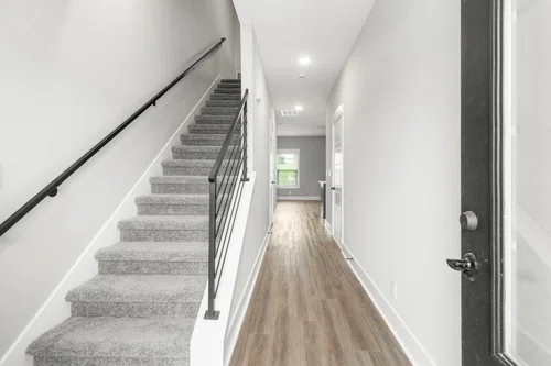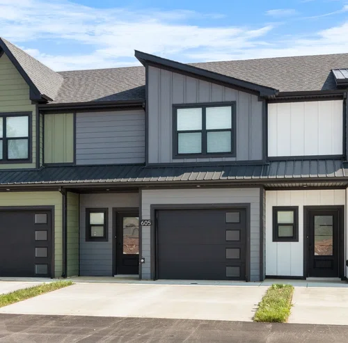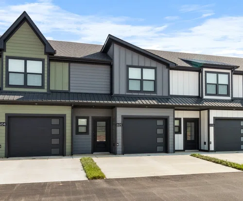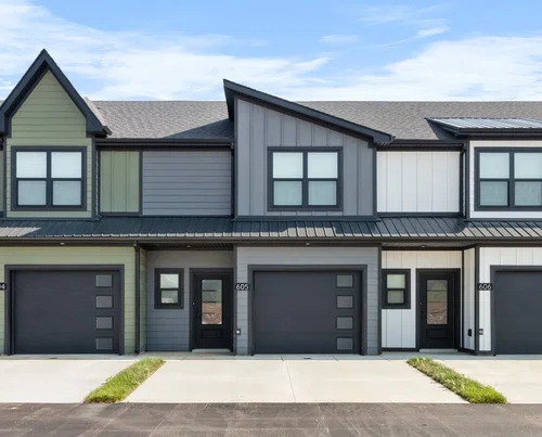 These luxurious modern townhomes have upgraded finishes throughout. Each unit includes a 1 car attached garage & driveway for additional parking. Additional parking spaces are available throughout the development. Nice open living space on the main level. Kitchen features quartz counters & stainless steel appliances. Plenty of cabinet & counter space. Main level also includes half bath. Upstairs you will find two oversized bedrooms, each with attached baths! Both upstairs bathrooms feature LVP flooring & upgraded fixtures. Laundry closet is also conveniently located upstairs between the bedrooms. HOA includes full lawn care, trash concierge service, & insurance on exterior building, common grounds, mailbox clusters and HOA.