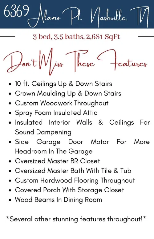 BRAND NEW CONSTRUCTION! Experience modern living in this beautifully designed home featuring finished wood and custom woodwork throughout. This home boasts 10ft ceilings both upstairs and down as well as crown molding throughout. The primary bedroom has an oversized closet and a bathroom with a custom tiled shower and separate tub. Each bedroom boasts its own private bath, ensuring comfort and privacy for everyone. Outside, you'll find a large covered porch with a storage closet. Enjoy the convenience of a 1-car attached garage ( with a side garage door motor- providing more overhead space) and the freedom of NO HOA! Located just 11 minutes from Downtown, this home offers easy access to West Nashville's shopping and dining options. Check out the media for images of a similar home! Don't miss out on this exceptional opportunity!