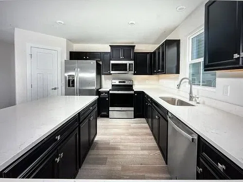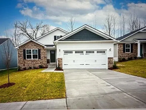 Welcome to 717 Cottage Dr, a stunning 2021 model home located in a quiet, family-friendly neighborhood just minutes from Columbia Square and with easy access to I-65. This beautifully upgraded one-level home is situated on a peaceful tree-lined homesite, offering the perfect balance of privacy and convenience. The Dominica Springs floor plan features three spacious bedrooms with walk-in closets, plus a versatile flex room that can be tailored to your needs—whether as a home office, formal dining room, or additional living space. Inside, the open-concept living area is both elegant and functional, with engineered hardwood floors flowing throughout. The chef-inspired kitchen boasts sleek Quartz countertops, stainless steel appliances, and ample cabinetry, making it the perfect space for cooking and entertaining. The living area seamlessly connects to the covered back porch, ideal for relaxing or enjoying the tranquil surroundings of the tree-lined yard. The luxurious owner’s suite is a true retreat, complete with an oversized walk-in closet and a spa-like bath featuring a tiled walk-in shower with a built-in bench and a double vanity. This home comes move-in ready with premium upgrades, including plantation shutters throughout, adding elegance and privacy. The fully fenced-in yard provides security and is perfect for pets or outdoor activities, while the built-in sprinkler system ensures easy lawn maintenance. A 2-car garage offers parking and additional storage space, and all lawn maintenance is included, allowing you to enjoy your home without the hassle of yard work. With modern finishes and thoughtful upgrades throughout, 717 Cottage Dr offers a serene and stylish living experience. Don't miss out on this exceptional home!
