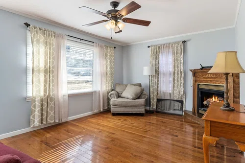 Welcome to this charming one-level, 3 bedroom, 1 bath home! This property features beautiful hardwood floors throughout and fresh paint, creating a warm and inviting atmosphere. As you enter, you're greeted with a spacious living area with beautiful natural light and a corner fireplace. The kitchen features gorgeous wood cabinetry and matching appliances with adjacent dining area. The finished walk-out basement is a standout feature, complete with rustic wood paneling, brick floors, and a built-in bar- perfect for entertaining or relaxing after a long day. A flex room in the basement can easily serve as an additional bedroom or office space. Enjoy the convenience of a detached garage with 8ft door, ideal for extra storage or accommodating a boat or other recreational items. This home also comes equipped with an RV hookup and concrete RV pad, making this a dream for outdoor enthusiasts. With three parcels, this property offers ample outdoor space.