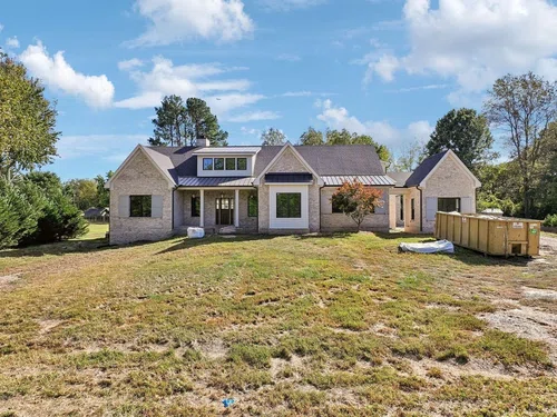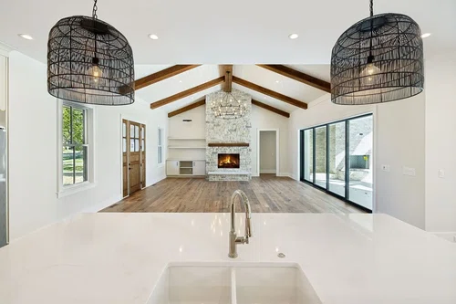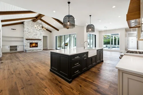 ONE-LEVEL living, high end new construction with an unparalleled outdoor oasis! Welcome to this truly remarkable estate in the heart of Brentwood spanning over 6,400 sq ft on a flat 1 acre lot! This home offers a unique one-level living layout with over 5,000 sq ft on the main floor featuring 4 spacious bedrooms & 4.5 baths, along w/ a delightful 2nd floor bunk room & a full bath, complemented by a bonus room, flex space, & conditioned storage. As you approach, three elegant gas lanterns illuminate the entrance, setting the tone for the sophistication within. Upon entering, the home encompasses high-end finishes such as European white oak floors, quartz countertops in the kitchen & primary bath, stone wood-burning fireplace featuring a gas starter, custom beams adorn both the living room and primary suite, while a conditioned wine room showcases locally sourced white oak paneling & leathered quartz countertops. Modern conveniences abound, including 5 HVAC units, conditioned crawlspace, foam insulation, a full RV hookup w/ water, electricity, & sewer access. Plus, there's a detached studio/office space for added versatility. Huge glass sliding pocket doors seamlessly connect the living & dining areas to your private oasis. Step outside to discover a massive pool complete w/ stunning water features a tanning ledge, oversized spa, swim up bar with 7 in pool barstools, a cozy sunken fire pit, outdoor shower, & a sunken lounge area complete with an outdoor kitchen. Amazing outdoor spaces perfect for entertaining, all surrounded by breathtaking landscaping and luxurious textured silver marble pool decking. The covered rear porch is equipped w/ wall-mounted electric heaters, a wood-burning fireplace w/ a gas starter, & a retractable screen for year-round enjoyment. The property also includes a spacious 3.5-car attached garage (with 1 bay perfect for a golf cart or storage), full yard irrigation, sod, & a rear fenced-in yard.