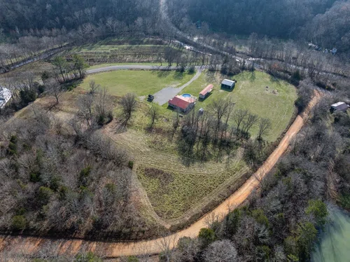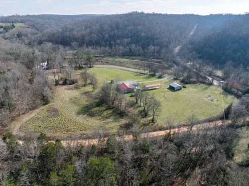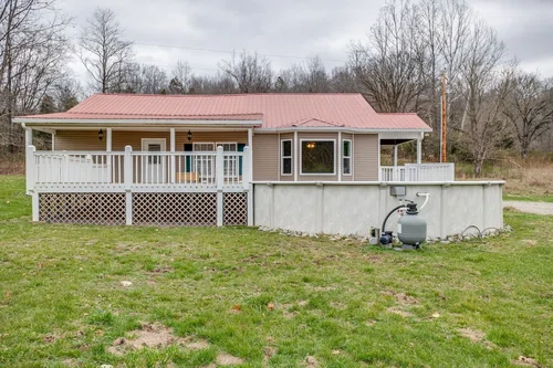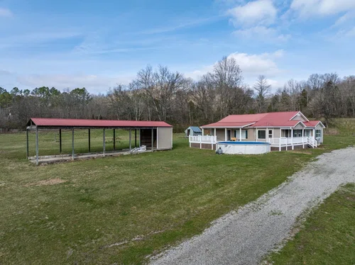 Save up to 1% of your loan amount as a closing cost credit when you use seller's suggested lender! Just off the Natchez Trace Pkwy, three miles from the Williamson/Maury county lines, you will find this private retreat welcoming you into the serenity of Primm Springs. 25 minutes to iconic Leiper's Fork, 20 minutes to I-40, 30 minutes from dining in Columbia, and 45 minutes from Cool Springs shopping make this an ideal central location. 20+ acres offers a mix of open pasture that transitions up a mild slope of walkable woods. This property offers the room for additional build sites making it perfect for a family compound. Relax on the deck or in the pool as you're cradled by Tennessee hills for every magnificent sunset. Inside the home, you'll be greeted with new paint and carpet ready to move in. The spacious main bedroom features a private entrance to the deck and an en suite bathroom with dual vanities and two large closets. Connecting all the rooms in the center of the house is the open and inviting eat-in kitchen that includes stainless steel appliances. To the back you will find a utility room that features washer/dryer hookups, water heater, and exterior exit. Off of the kitchen, you will find a full bath with shower/tub combo. There are two additional bright and comfortable bedrooms along with two living areas. One of which features a large bay window overlooking the pool deck, tall ceilings, and large double doors exiting onto the covered deck. Directly behind the house you will find a cellar/shelter that was built into the slope. Two wells ensure this property is ready for additional buildings or animals.