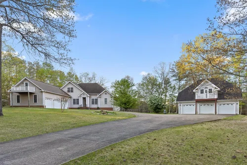 Welcome to 8710 Hidden Branches Rd, Harrison, TN 37341. This remarkable residence boasts an impressive 7 bedrooms and 6 bathrooms, spanning a sprawling 6569 sqft. Park your vehicles effortlessly with both a 3 car attached garage and an additional 3 car detached garage. Nestled amidst mature trees, the large back deck offers a perfect spot for outdoor gatherings and relaxation. Step inside to discover an inviting open flow concept, highlighted by a vaulted living room that creates a sense of spaciousness and warmth. The heart of the home is the generously sized kitchen, featuring an island, stainless steel appliances, and abundant cabinets, ideal for culinary enthusiasts and entertaining guests. Adjacent is a big laundry room complete with a sink, adding convenience to daily chores. Retreat to the primary suite, where a double vanity, soaking tub, and walk-in closet await, providing a luxurious escape. Spiral steps lead to the walkout basement, offering additional living space and featuring a wet bar and pantry, perfect for hosting gatherings or relaxing evenings. Throughout the home, hardwoods adorn the floors, adding an element of elegance and durability. With its thoughtful design and abundance of features, 8710 Hidden Branches Rd offers a harmonious blend of comfort, functionality, and sophistication. Don't miss the opportunity to make this exceptional property your own. Schedule your showing today and experience the epitome of luxury living in Harrison, TN.