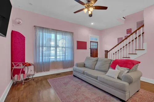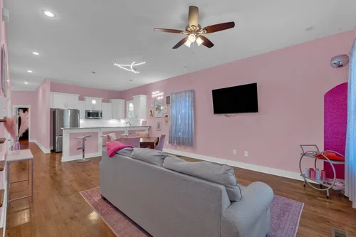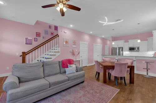 NOO-STR in the Nations with a $10,000 paint allowance to make it your own! Fully furnished and decorated with all the details in mind, your guests will experience the ultimate Nashville getaway. The main floor is the perfect welcoming platform with open kitchen, dining and living room to host the gathering before going downtown, or a quiet night at home. The primary suite on the first floor is beautifully decorated and features a spacious bathroom for any traveler. Walk out the back door to unwind while overlooking the fully fenced backyard and serene treeline on the private sitting area. Upstairs, is a charming loft adorned with custom mural and fabulous lounge area for making memories and relaxing. Both bedrooms offer ample space, complemented by a jack and jill bathroom. This property sleeps up to eight guests with six individual beds. Located just 10-minutes from downtown, and even closer to hotspots like Fat Bottom Brewing and Pennington Distilling Company, as well as the vibrant scene of The Nations, this home is perfectly positioned for both convenience and entertainment.