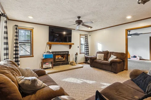 Escape to your own private retreat with this spacious 2304 sq ft cabin, nestled on 3.2 acres of wooded land, just 1 minute from the lake in this tranquil area. Whether you're looking for a peaceful weekend getaway or a full-time country living experience, this cabin offers it all!