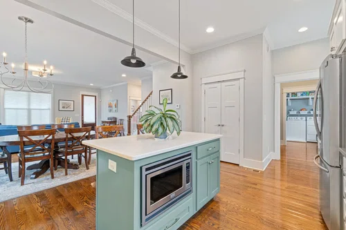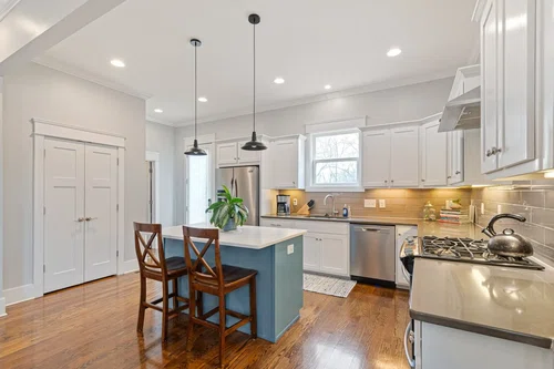 Adorable Maplewood / East Nashville newer construction home with a significant large fenced backyard area! 3 bedroom, 2.5 bath with large family room and cute office/flex space that current owners use as an additional bedroom. Open floor plan boasts so much natural light. Built in wall to wall bookshelf makes for an appealing bonus area! Real hardwood floors, high ceilings, stainless appliances, mudroom drop and large laundry room on main. Spacious primary bedroom on main floor with large primary shower and separate bath, double vanities and large walk in closet. Walk in closets are throughout the house and home has lots of good storage! Great kitchen with stainless appliances, gas stove, and island with bar seating. A beautiful covered porch perfect for seasonal evenings! And an uncovered large patio in the back for backyard time. Boasting a large backyard lot which is fenced for privacy, this is a great retreat for relaxing. Bedrooms upstairs are very roomy, airy, and filled with natural light and have large closets. Bedrooms share a large tile bath area that also has a double sink vanity. Fresh paint, remote controlled blinds and well kept space awaits you in this comfy home! Roof was replaced in 2023 and the upstairs HVAC is new. Home was also professionally measured and boasts over 3000 sq ft of space. Home has a long, shared driveway and can accommodate street parking for your guests. Conveniently located to downtown, and various interchanges, it is easy to get to various places around Nashville from this home. This 2015 build awaits you! A must see!